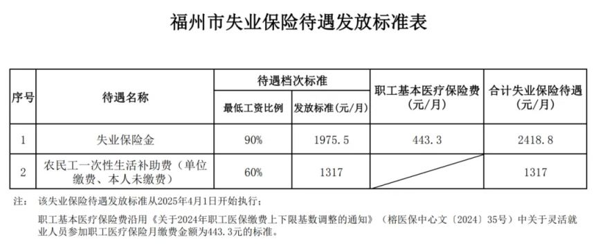 福建省失业保险金发放标准按照当地月最低工资标准的90%执行,按月发放。2025年4月1日起,福州市最低工资标准调整为2195元/月,失业保险待遇标准相应调整。